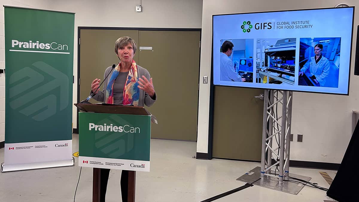 The funding was part of a $4.6 million announcement to support multiple initiatives within Saskatchewan’s agriculture sector. The announcement was made by the Honourable Eleanor Olszewski, Minister responsible for Prairies Economic Development Canada (PrairiesCan), during a visit to GIFS on Tuesday.